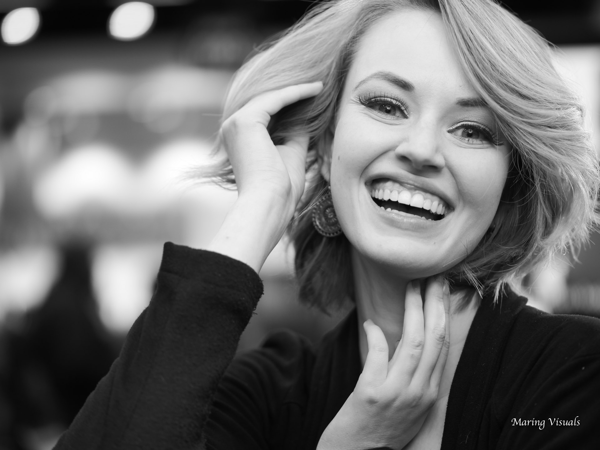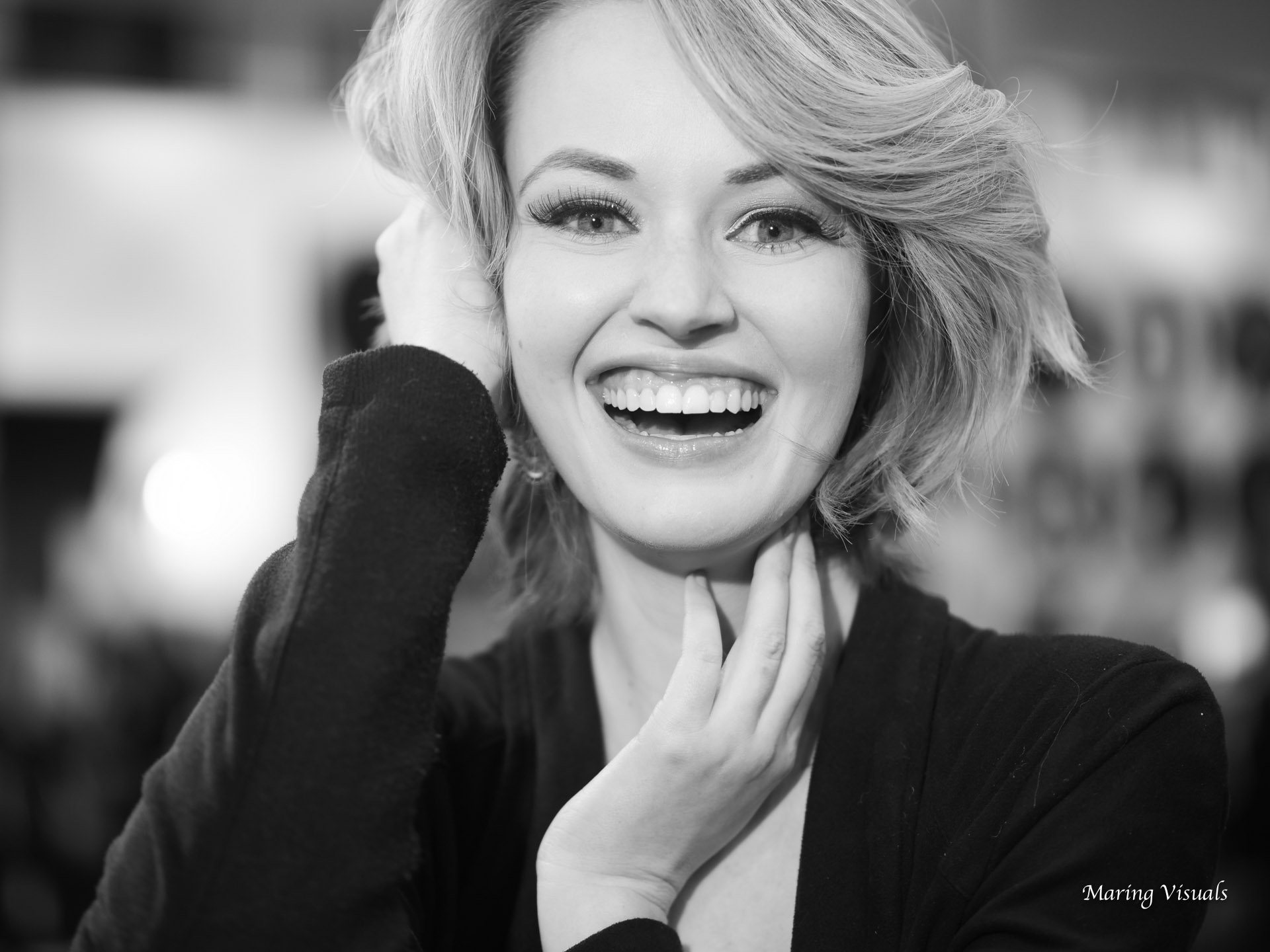 We were recently in Los Angeles on assignment at the Adobe Max conference. As well known experts in our field, we love to give back through education. Adobe Max provided an opportunity to do just that. On this day we would be working in Black and White with model Jennie Carroll. Our job… To create expressive portraits on the new Panasonic Lumix G9. They say the camera doesn’t make the photograph, and that is absolutely true. However, not all cameras are equal when it comes to black and white, and it just so happens that our latest camera systems have some features built in that allow us to create black and white photographs reminiscent of the film days. There are organic grain options built into the camera, on top of a wide selection of creative black and white presets which we can dial in to our personal tastes. He we dialed in an orange filter which gave beautiful milky white skin tones and made the darks stand out. On a few below, check out the film grain… It’s looks incredibly filmic! It’s nice to see film grain again that looks real in black and white imagery…