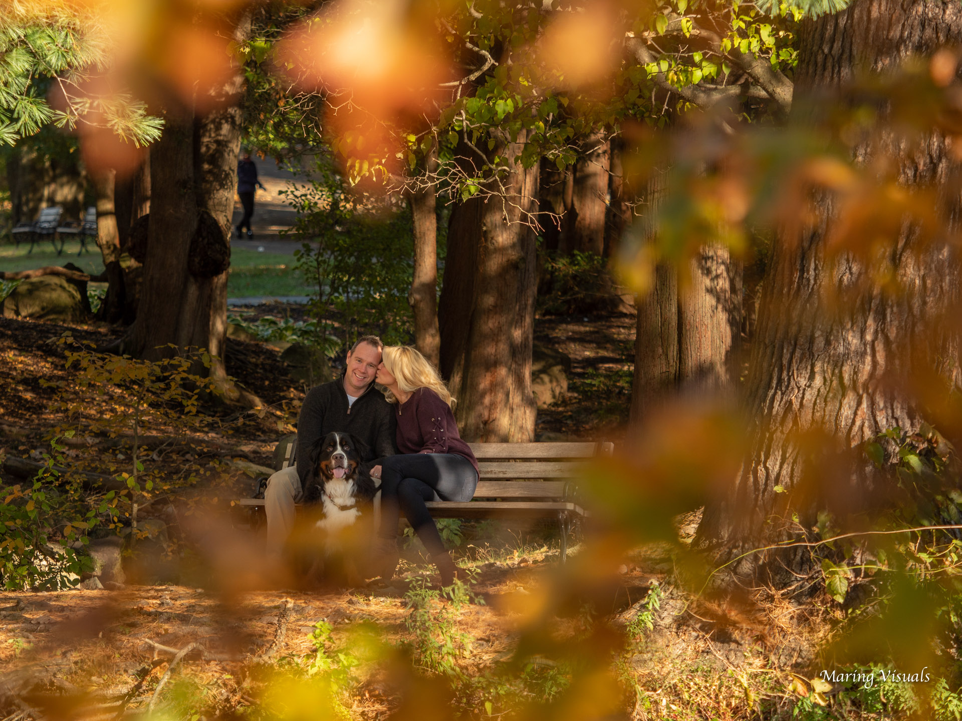 Our portrait photography is for couples and families who love their lives! It’s a beautiful fall day, and we are out creating portraits with long time clients and friends Stephanie and Brian along with their beautiful dog. We photographed their wedding many years ago at Saint Clements Castle, and have been creating portraits each year with them ever since. Elizabeth Park, located in West Hartford, provides a beautiful backdrop for us to create in. Every season in New England has it’s charm making it a special time of year for great portraits. Reach out to us about creating portraits of you and your loved ones.