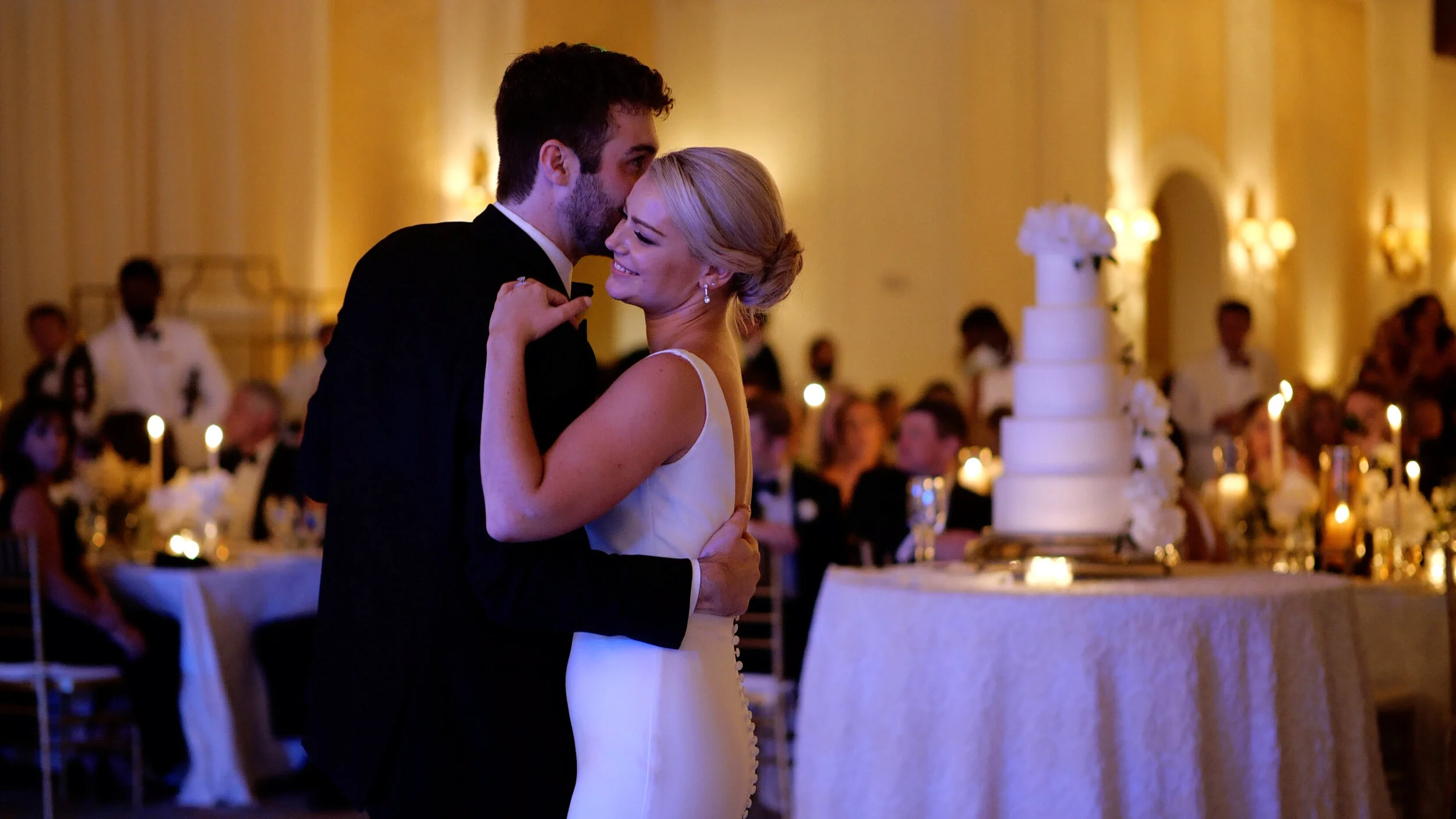 The bride and groom enjoy their first dance as wedding photographer and videographers of Maring Visuals capture the moment without intrusion.
